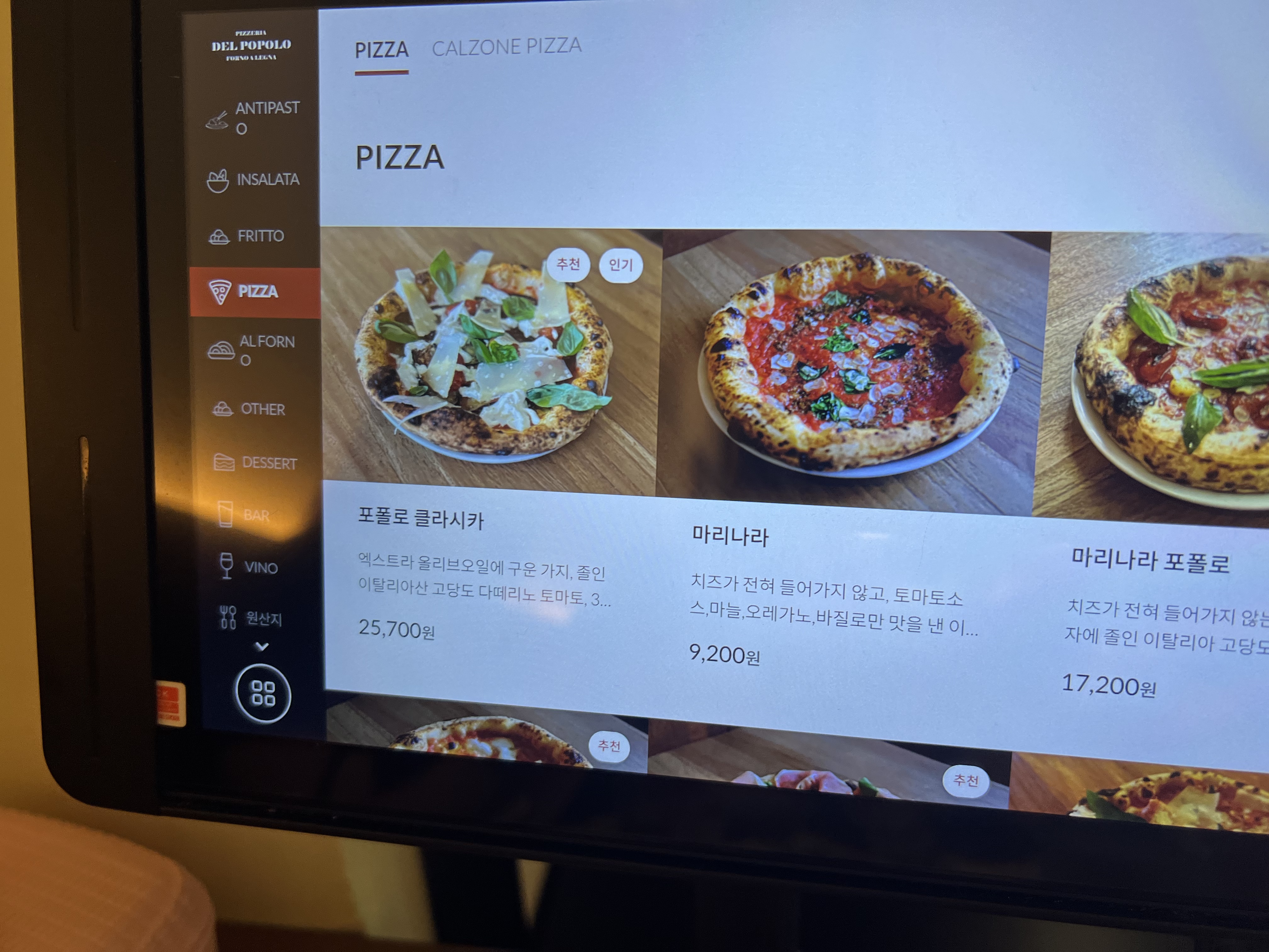 앞전 글에서도 말씀드린 대로 핏제리아라는 단어는 나폴리 피자대회에 시상을 해야 쓸 수 있다는 썰처럼 여기도 그냥 포폴로피자(핏젤리아 델 포폴로)라고 합니다. (챔피언 간지??ㅋ)