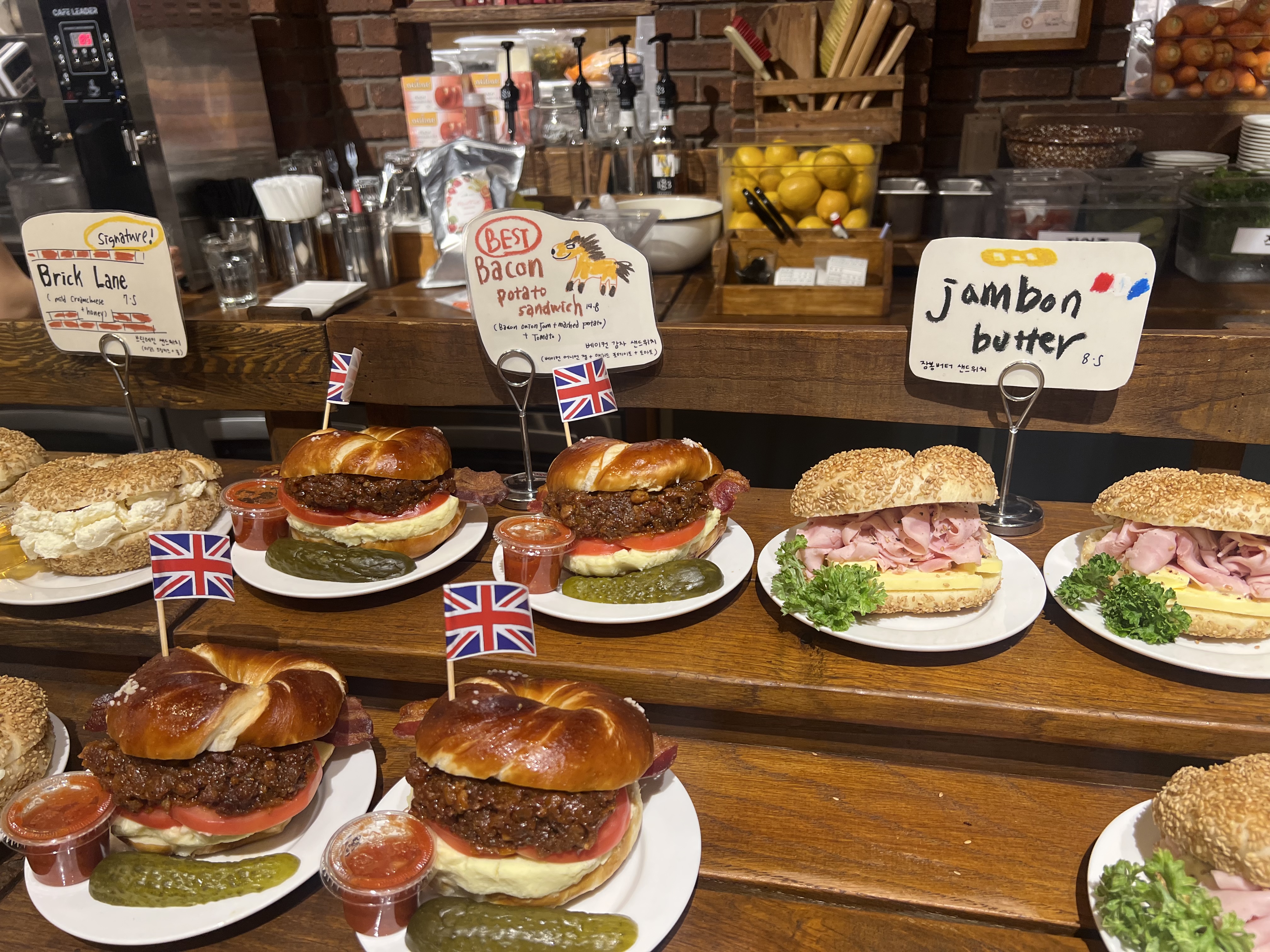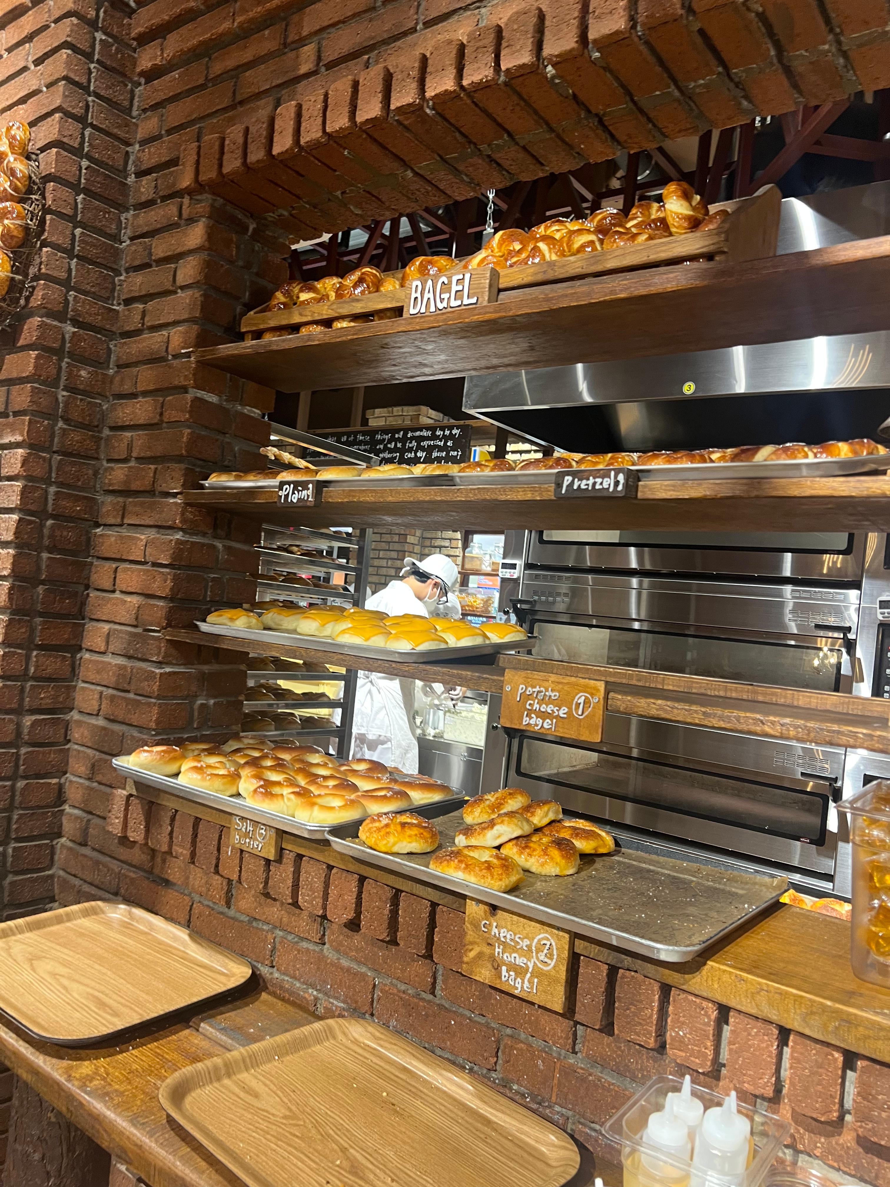 - 메뉴 : 플레인 베이글, 토마토허브베이글, 참깨베이글, 소금빵베이글, 프레첼플레인베이글, 어니언베이글, 무화과베이글, 에브리띵 베이글, 블루베리 베이글, 시나몬 피칸베이글, 블랙올리브베이글, 바즐베이글, 갈릭베이글, 잠봉버터베이글 등