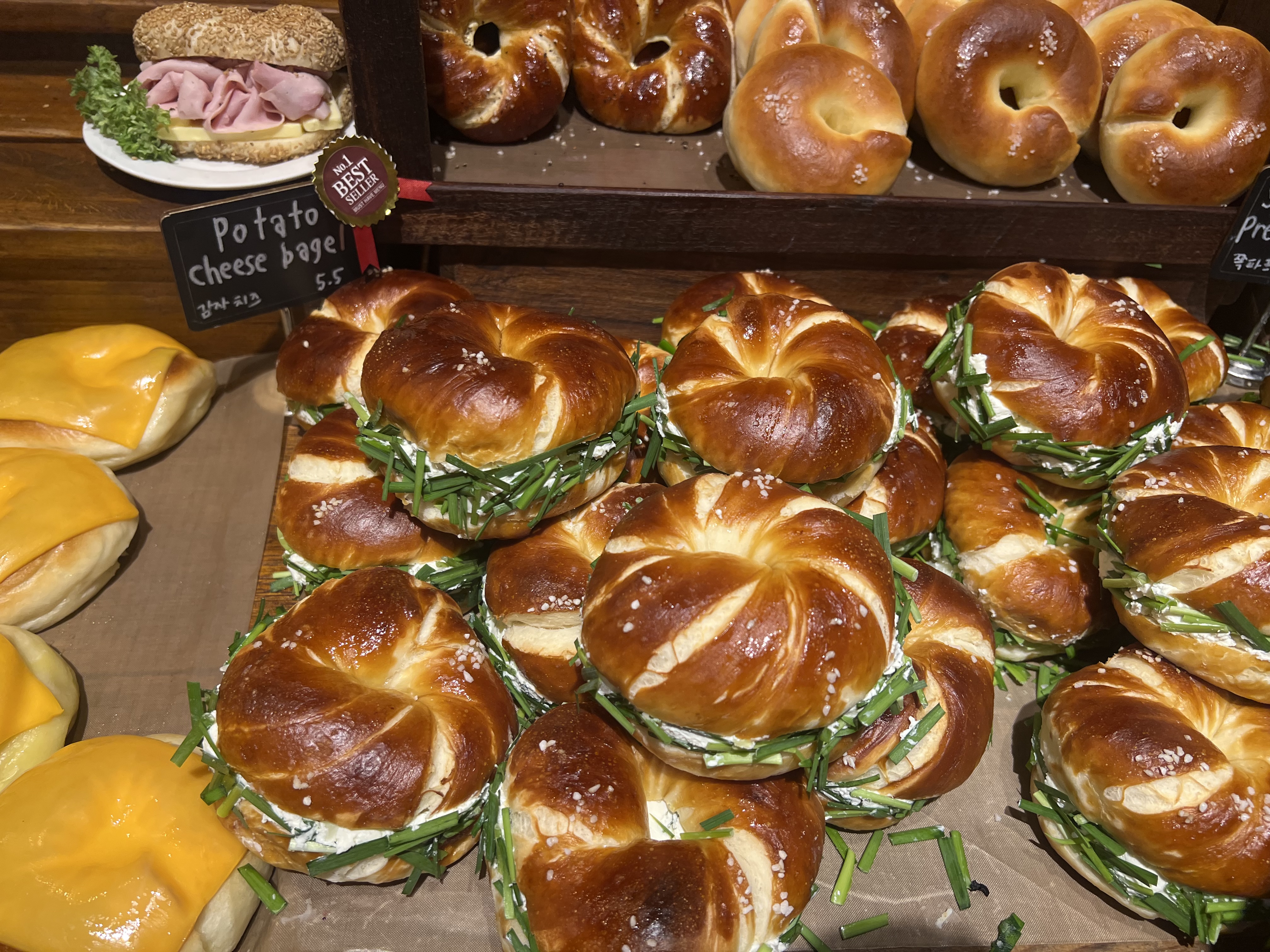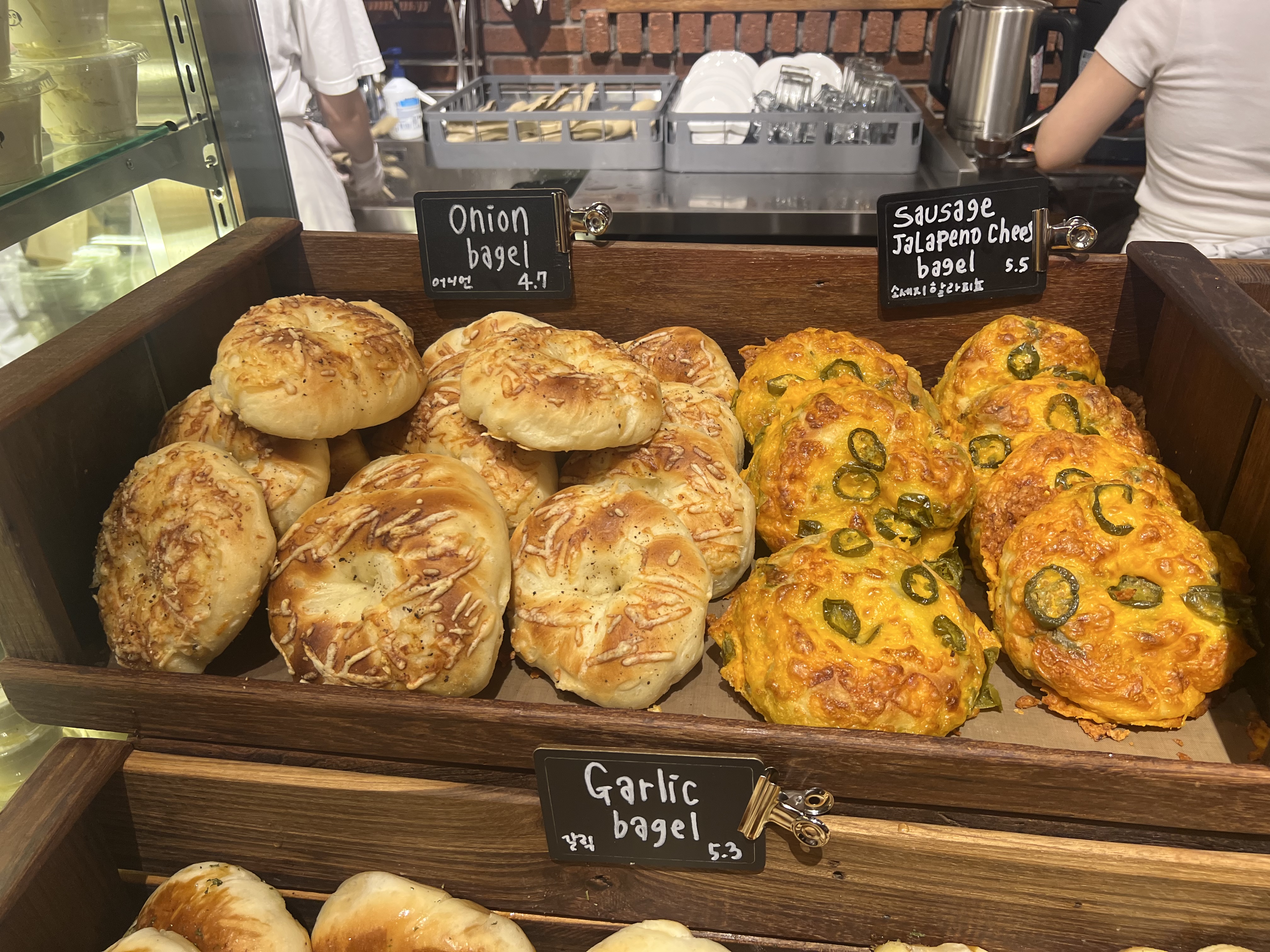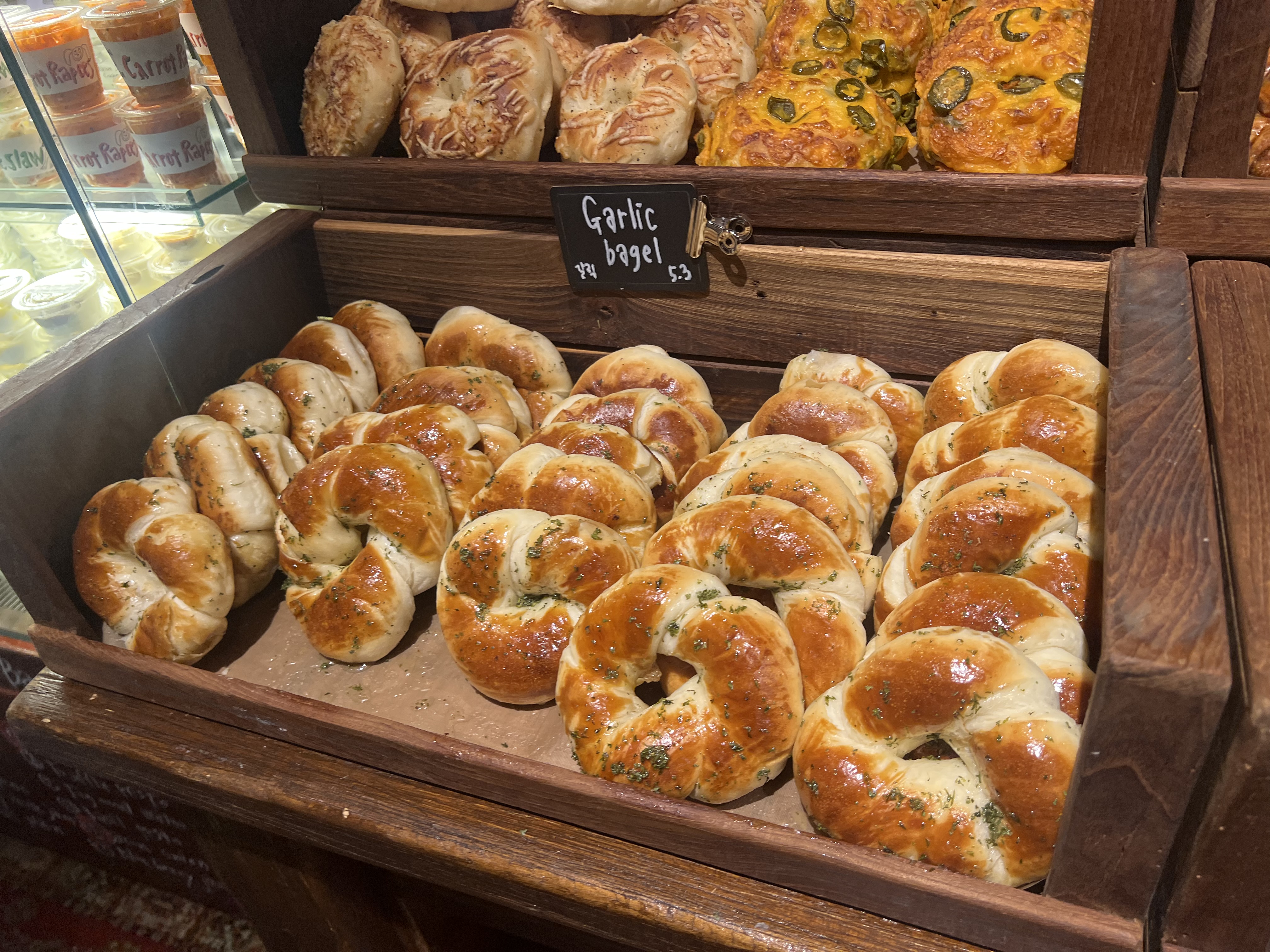 플레인 베이글, 블랙 올리브 베이글, 소금빵 베이글, 프레첼베이글, 갈릭베이글, 잠봉버터 베이글 등...
